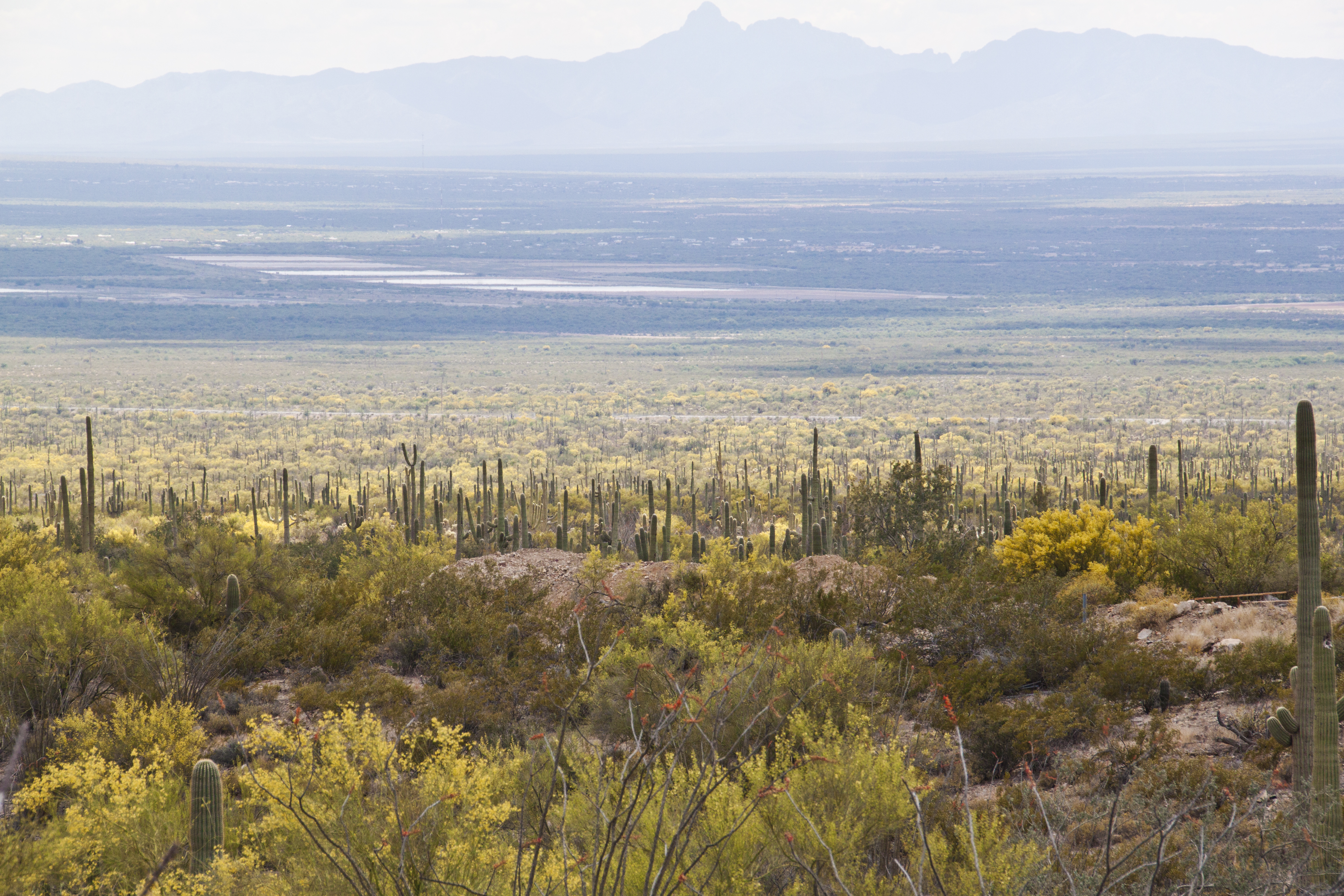 Looking west across the CAP reservoirs with the Palo Verde trees in full bloom