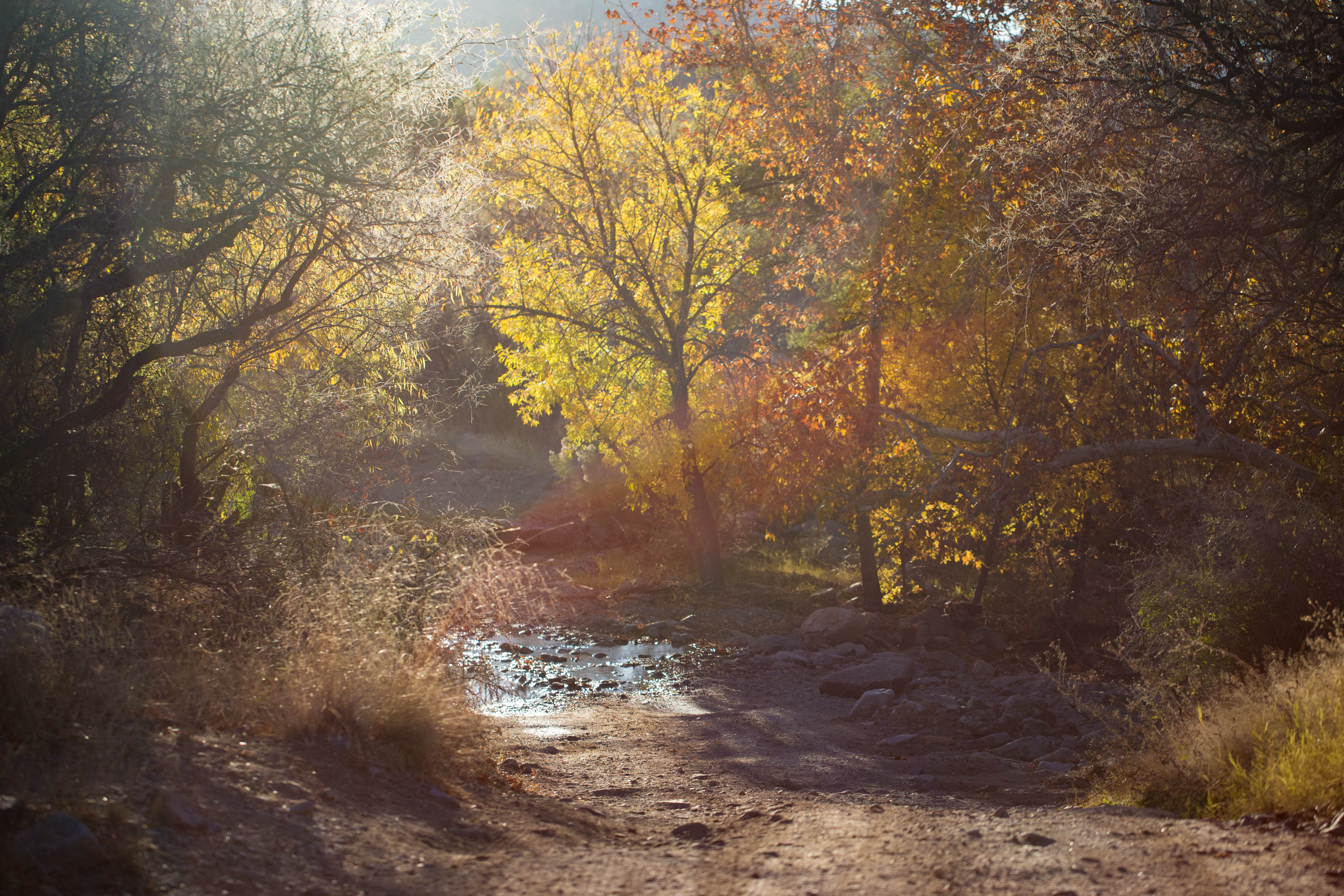 Late afternoon sunlight trickles through the December foliage along the Proctor Trail