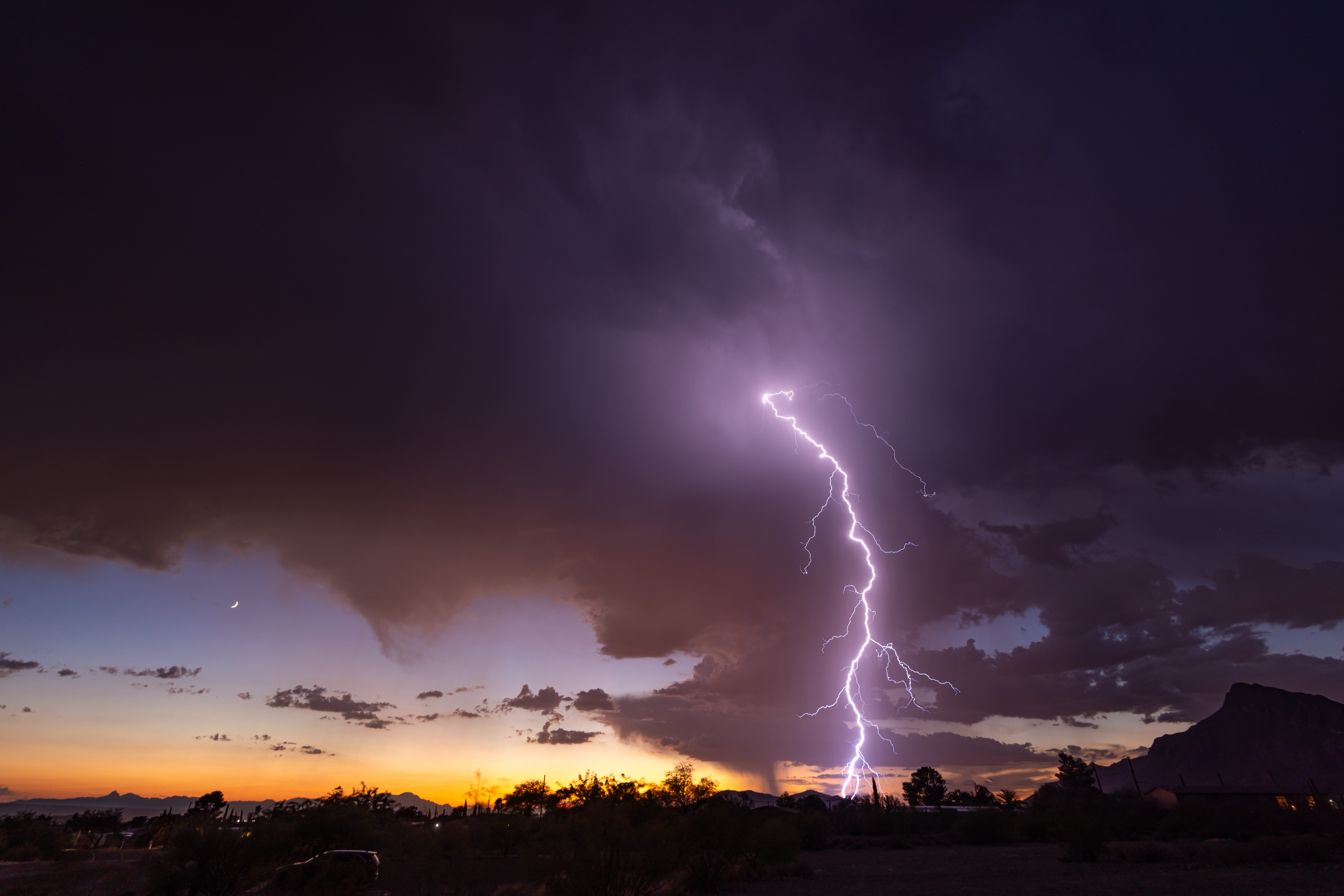 A lightning bolt at sunset from Sarasota Trailhead, Tucson Estates