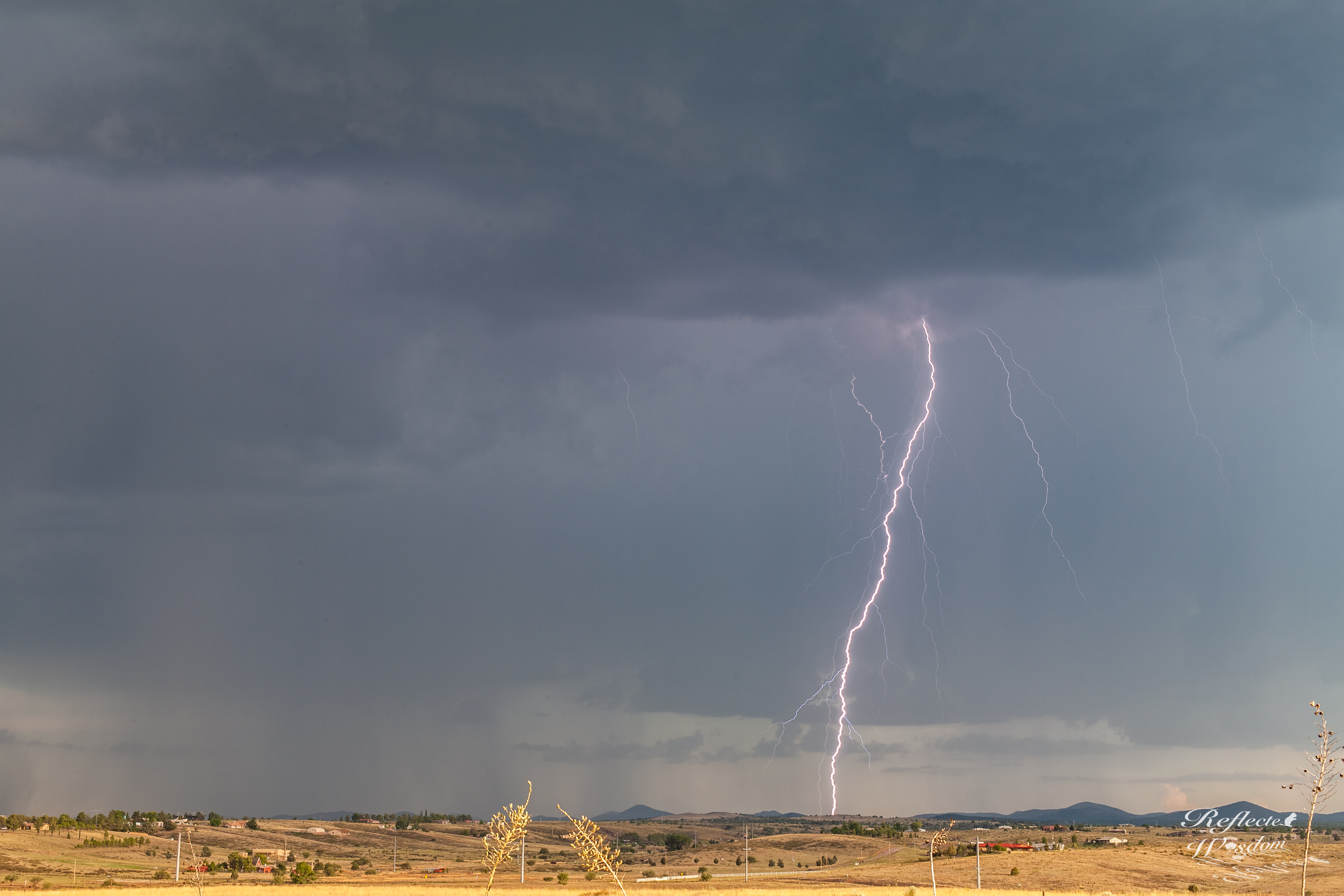 A daytime bolt of lightning lands east of Sonoita, AZ