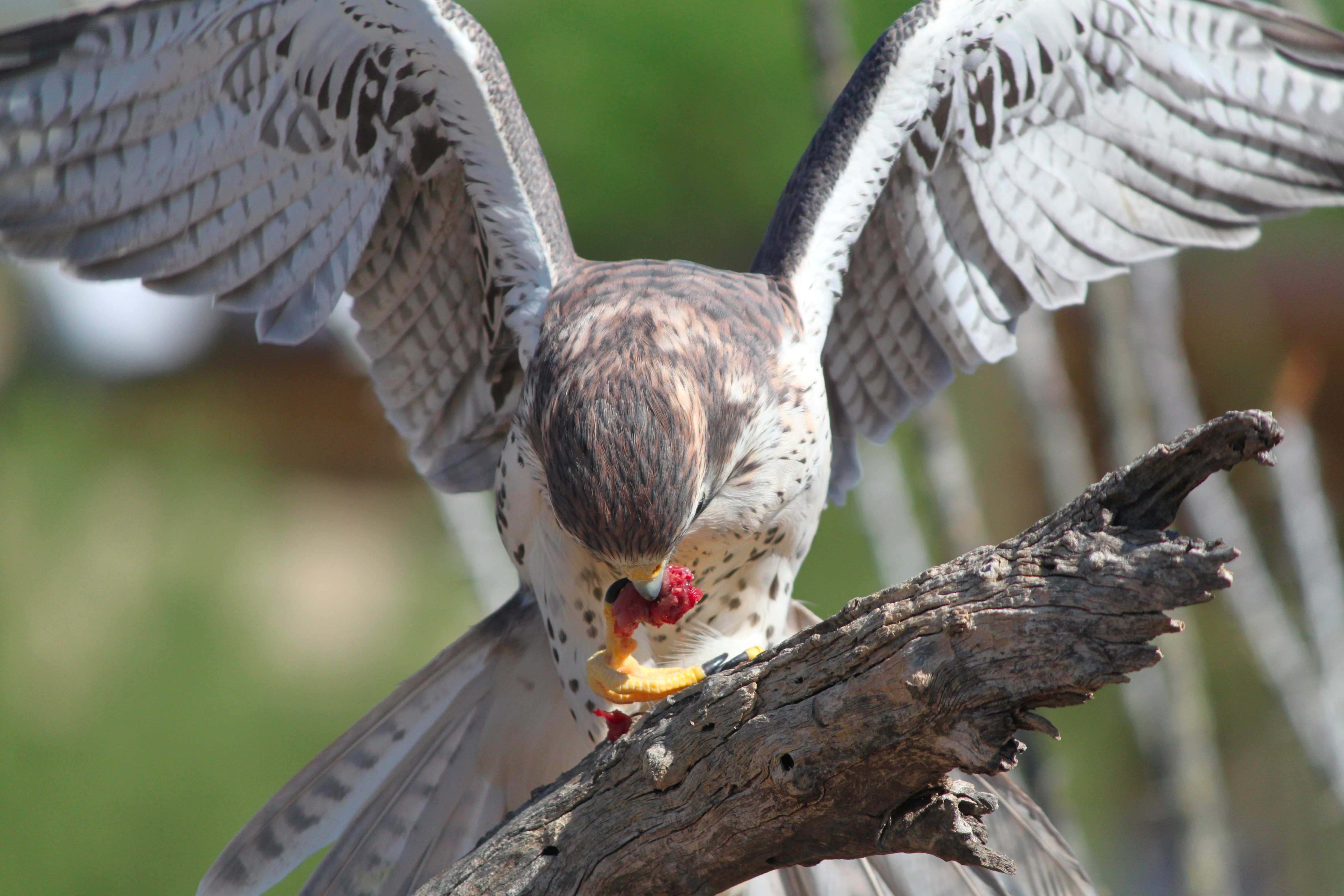 Ferruginous Hawk eating meat on a branch